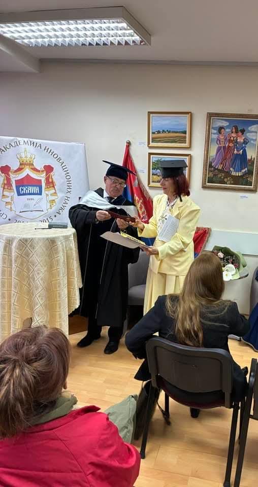 Проф. др Владица Ристић у функцији потпредсједника Српске Краљевске Академије Иновационих Наука, уручио је Повељу академику Мерими Његомир.